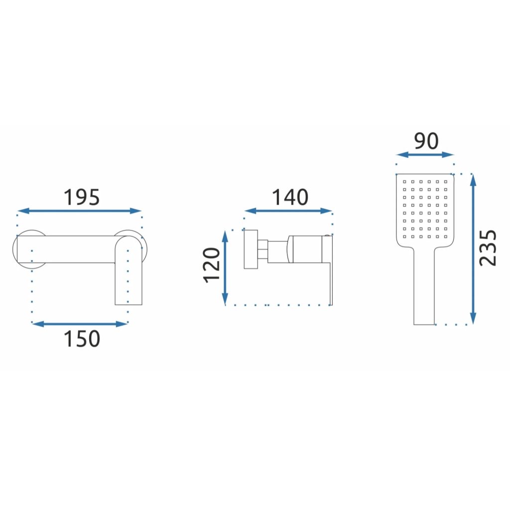 - lățimea conexiunii la perete: 19,5 - 15 cm