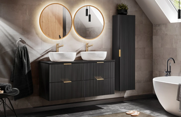 Dacă avem o baie mare, putem să ne lăsăm duși de val, dar atenție, regula „măsoară de două ori, taie o dată” se aplică în continuare! Tocmai în cazul dimensiunilor mari, clienții se lasă adesea duși de val și cumpără mai multe piese de mobilier decât au nevoie. Pe lângă dulapurile cu spațiu mare de depozitare, ne putem permite o cadă de colț spațioasă. Combinațiile cu cabină de duș sunt moderne. Pentru familiile numeroase, nu vă temeți de chiuvetele duble, ele economisesc timp și nervi în agitația de dimineață. Oglinzile au de obicei lumini LED încorporate, fie în partea de sus, fie pe tot perimetrul. Piesele mai scumpe au lumini cu nuanțe de culori diferite, activate prin mișcare sau prin aplauze. În băile mari, putem amplasa mașini de spălat, desigur, mai departe de apă și cu suficient spațiu pentru o manipulare ușoară. Dacă cumpărăm și un uscător, nu mai trebuie să pierdem timp cu uscarea rufelor.