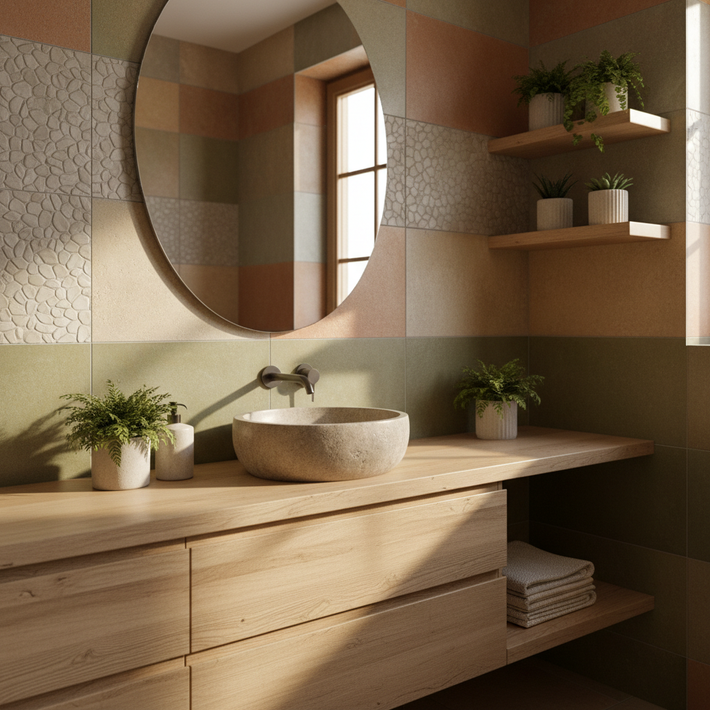 Natura are un efect calmant, de aceea materialele naturale sau inspirate din natură joacă un rol important în baie. Lemnul, piatra, ceramica cu textură fină sau suprafețele mate creează o senzație de căldură și armonie. Nu trebuie să fie dominante – uneori este suficient un detaliu care adaugă echilibru și naturalețe spațiului.