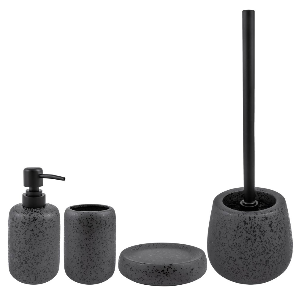 Accesoriile de baie de înaltă calitate, în diverse culori, devin din ce în ce mai populare. Dozatorul de săpun HADES, în culoarea modernă antracit , își va îndeplini scopul și, datorită designului său modern, va servi și ca element decorativ. Oferim și aceeași săpunieră, aceeași cană pentru periuța de dinți și aceeași perie de toaletă, astfel încât să puteți crea un set pe care să îl puteți asorta cu textilele de baie .