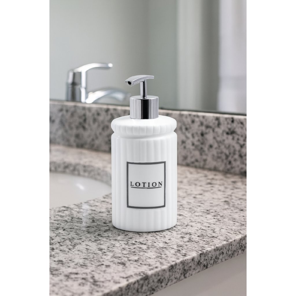 Accesoriile de baie de înaltă calitate, în diverse culori, devin din ce în ce mai populare. Dozatorul de săpun LORENZO, realizat în alb neutru cu descrieri, își va îndeplini scopul și, datorită designului său modern, va servi și ca element decorativ. Oferim și aceeași săpunieră, aceeași cană pentru periuța de dinți și aceeași perie de toaletă, astfel încât să puteți crea un set pe care să îl puteți asorta cu textilele din baie .