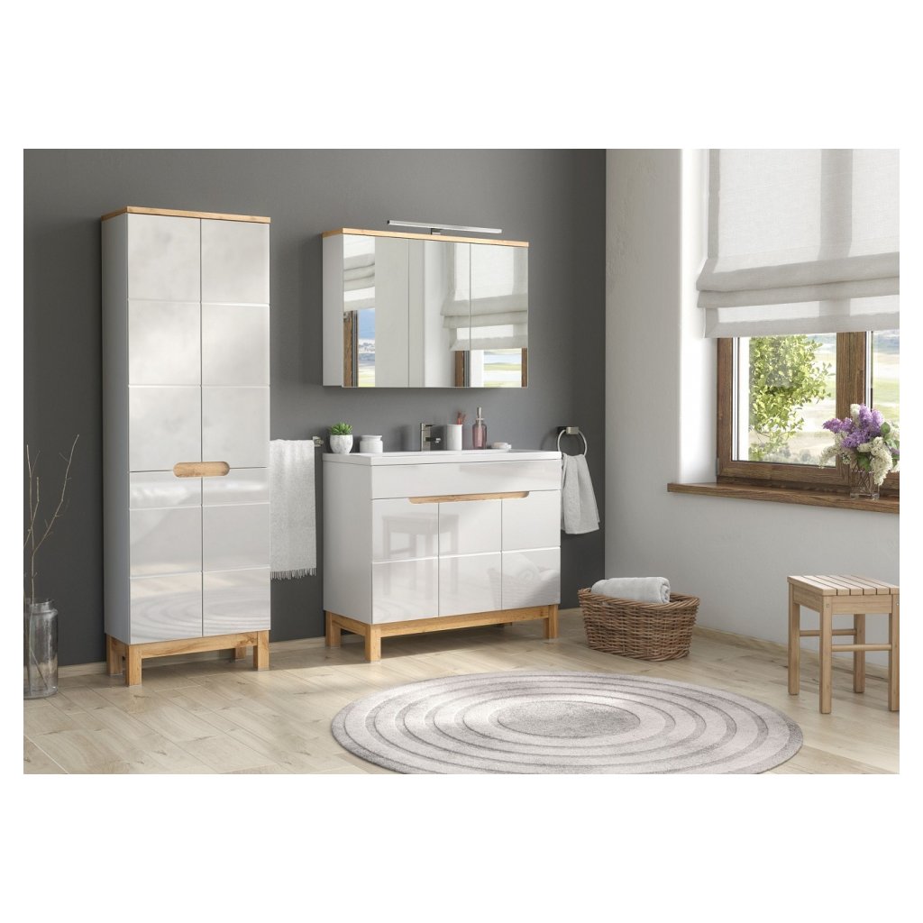 Designul modern combinat cu materiale de calitate creează o impresie de puritate și eleganță , acestea sunt dulapurile de baie BALI White. Dulapul cu oglindă BALI White 845 are trei uși cu oglindă. Acesta oferă mult spațiu de depozitare, de care este întotdeauna nevoie. Designul modern în culori și materialele de calitate garantează o durată lungă de viață.