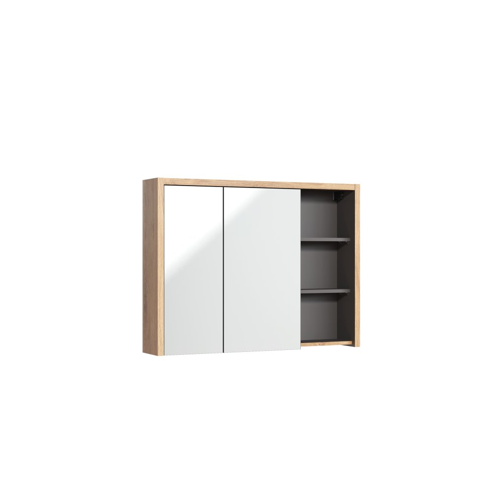 Setul de mobilier de baie DEVON reprezintă un ansamblu foarte plăcut și elegant , care împreună creează un loc fermecător, plin de bun gust. Dulapurile cu oglindă DEVON 846 au două uși cu oglindă și rafturi deschise. Ușile sunt dotate cu sistem de închidere silențioasă. Designul în culoarea grafit, în combinație cu decorul cald din stejar Shetland, creează un întreg armonios. Ușile pot fi montate în variantele stânga și dreapta.
