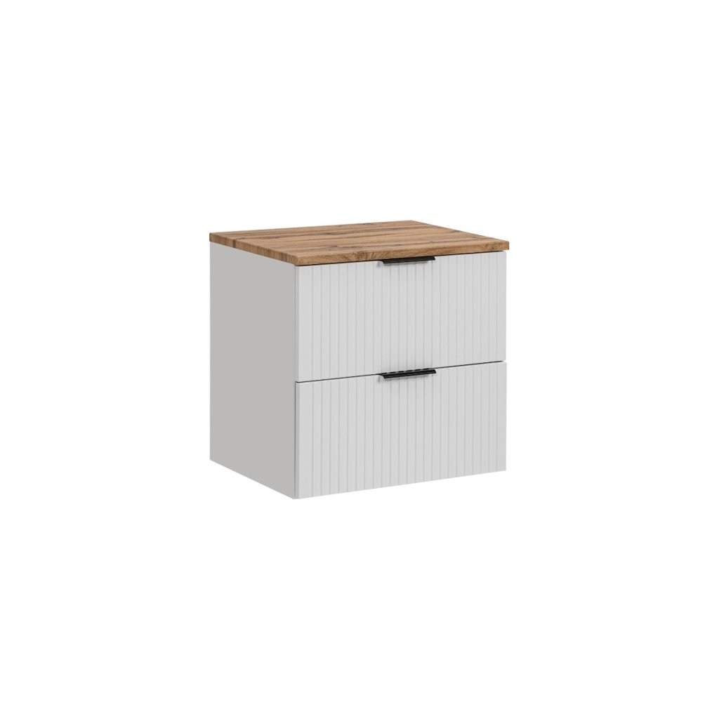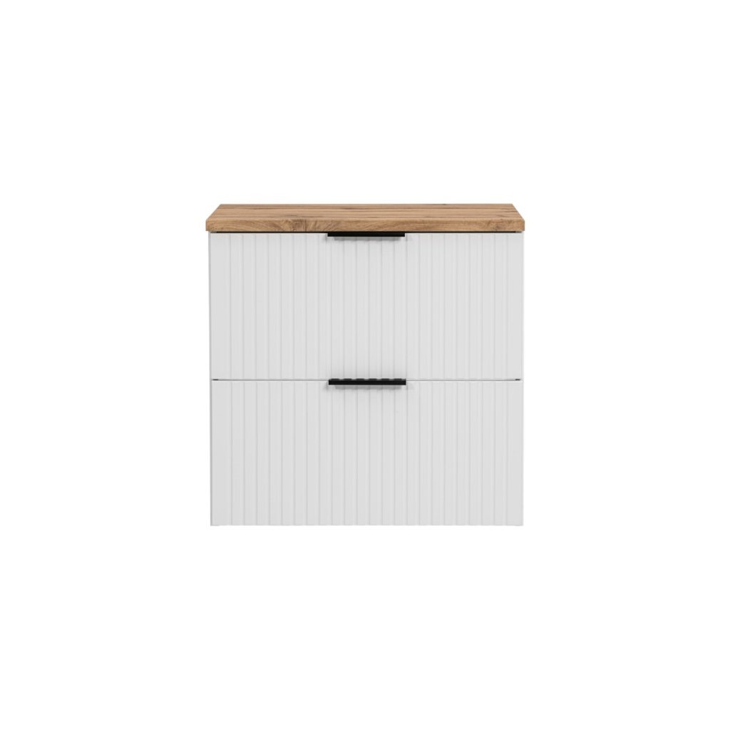 Mobilier de baie perfect ADEL D60/1 în alb combinat cu stejar Wotan Se potrivește perfect atât în băile moderne, cât și în cele clasice. Funcționalitatea sa ridicată va asigura confort chiar și pentru cei mai exigenți utilizatori. Designul minimalist este însuflețit de fronturile cu caneluri verticale, care sunt moderne și la mare căutare. Avantajul acestei colecții este posibilitatea de a alege culoarea mânerelor, prețul fiecărui dulap include trei versiuni de culoare ale mânerelor - auriu lucios, crom lucios și negru mat. Le puteți schimba în funcție de alte accesorii și totul se va potrivi perfect. Dulapul de sub chiuvetă este... se poate instala doar sifonul Preloc , celelalte nu sunt compatibile cu dulapul.