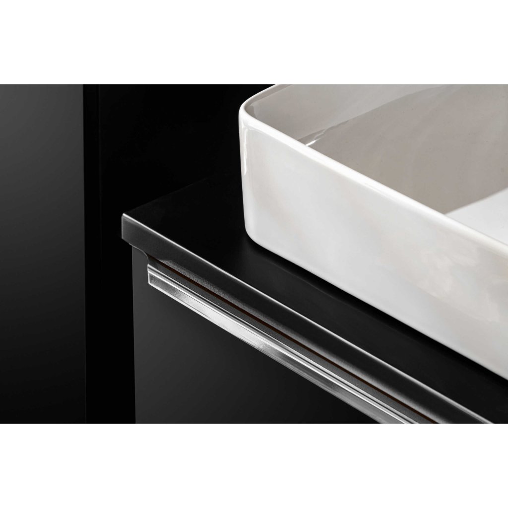 Mobilierul de baie din colecția SANTA FE BLACK, în negru mat, poate fi soluția potrivită pentru baia dumneavoastră. Aspectul elegant al mobilierului de baie este îmbunătățit de mânerul cromat și de aspectul ușilor cu design orhidee neagră. Pe lângă beneficiul estetic , mobilierul de baie SANTA FE BLACK oferă și soluții excelente pentru organizare și depozitare. articole de baie.