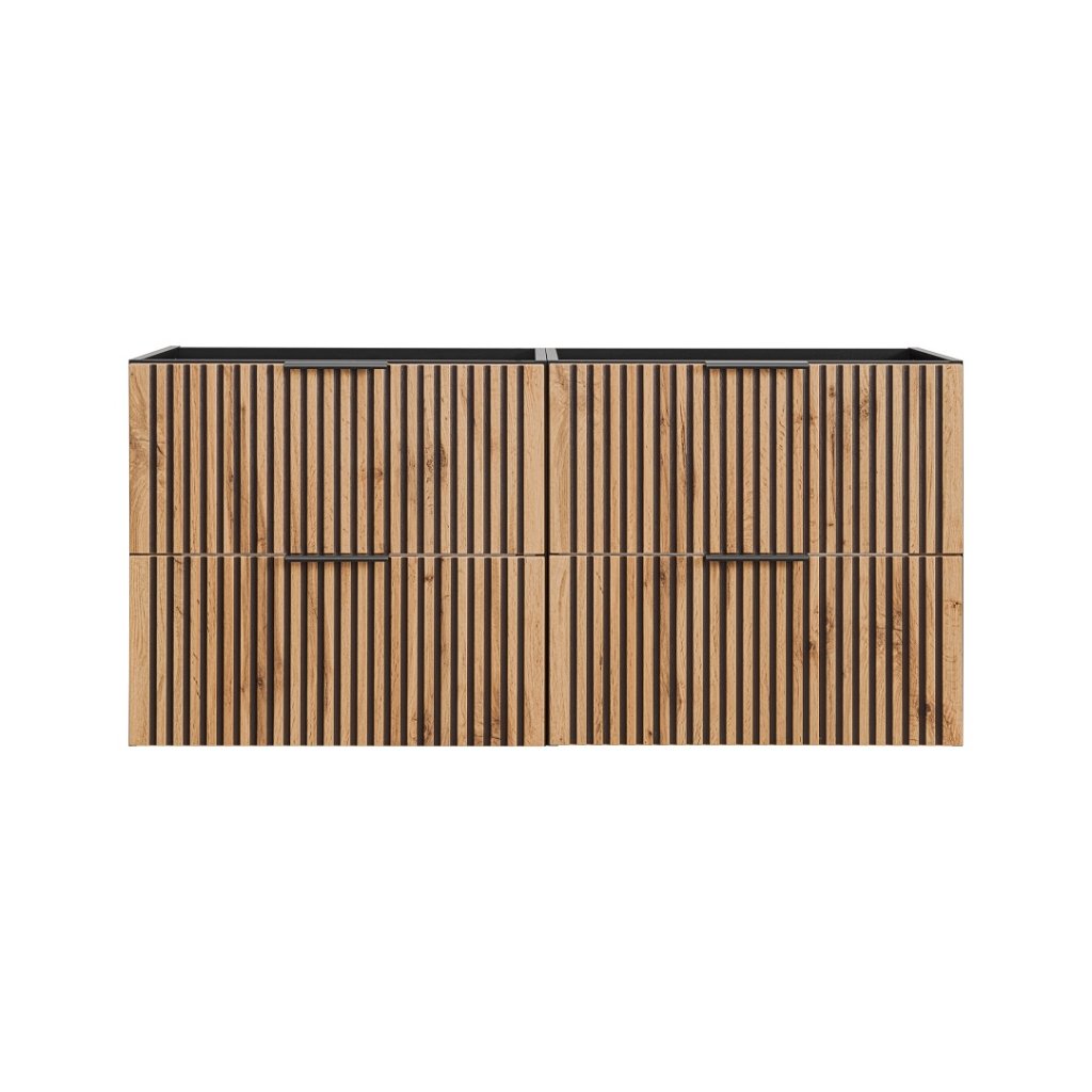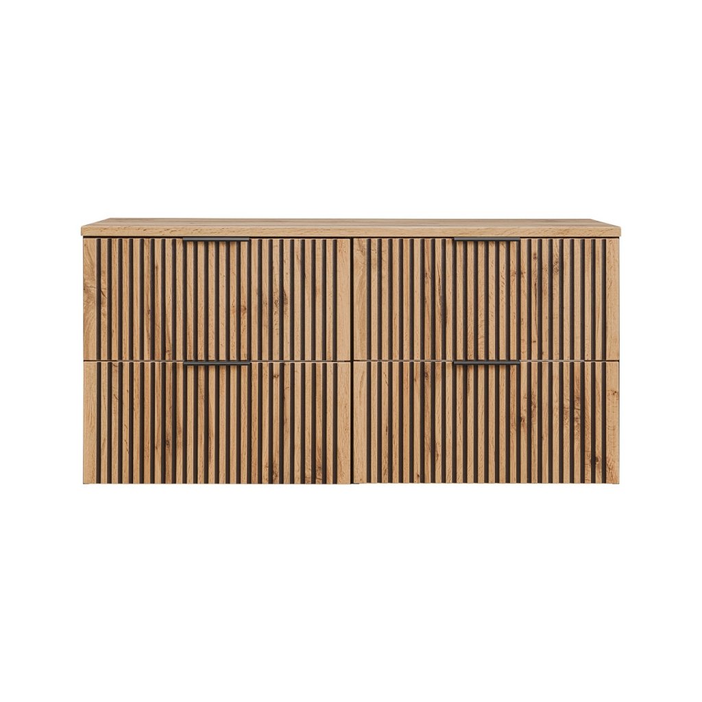 Mobilierul de baie modern cu blat XILO D120/1 în decor stejar Wotan nu este doar calitate și design modern, ci și confort și funcționalitate. Decorul distinctiv din lemn de stejar Wotan, în combinație cu canelurile negre, este o noutate pe piața mobilei, care este din ce în ce mai populară. Datorită materialelor de înaltă calitate și designului modern , vă va aduce bucurie pentru o lungă perioadă de timp.