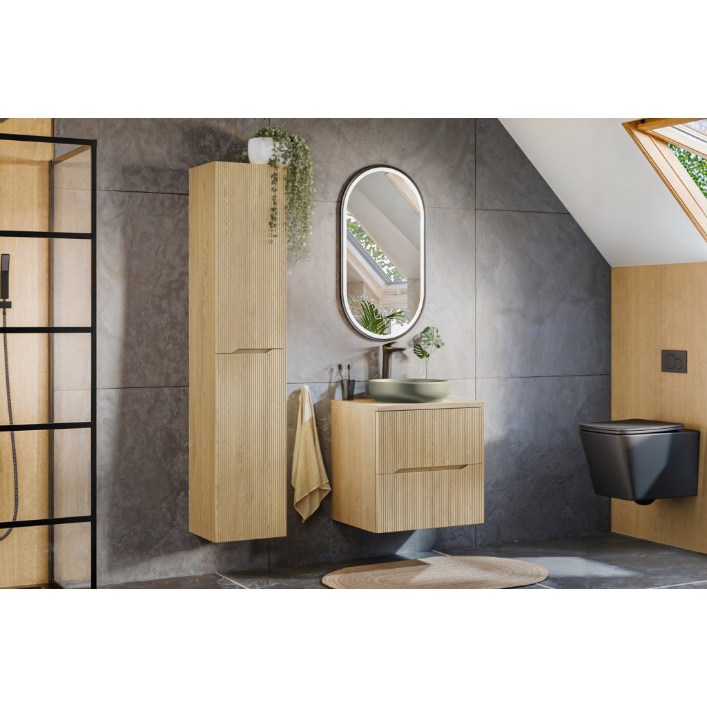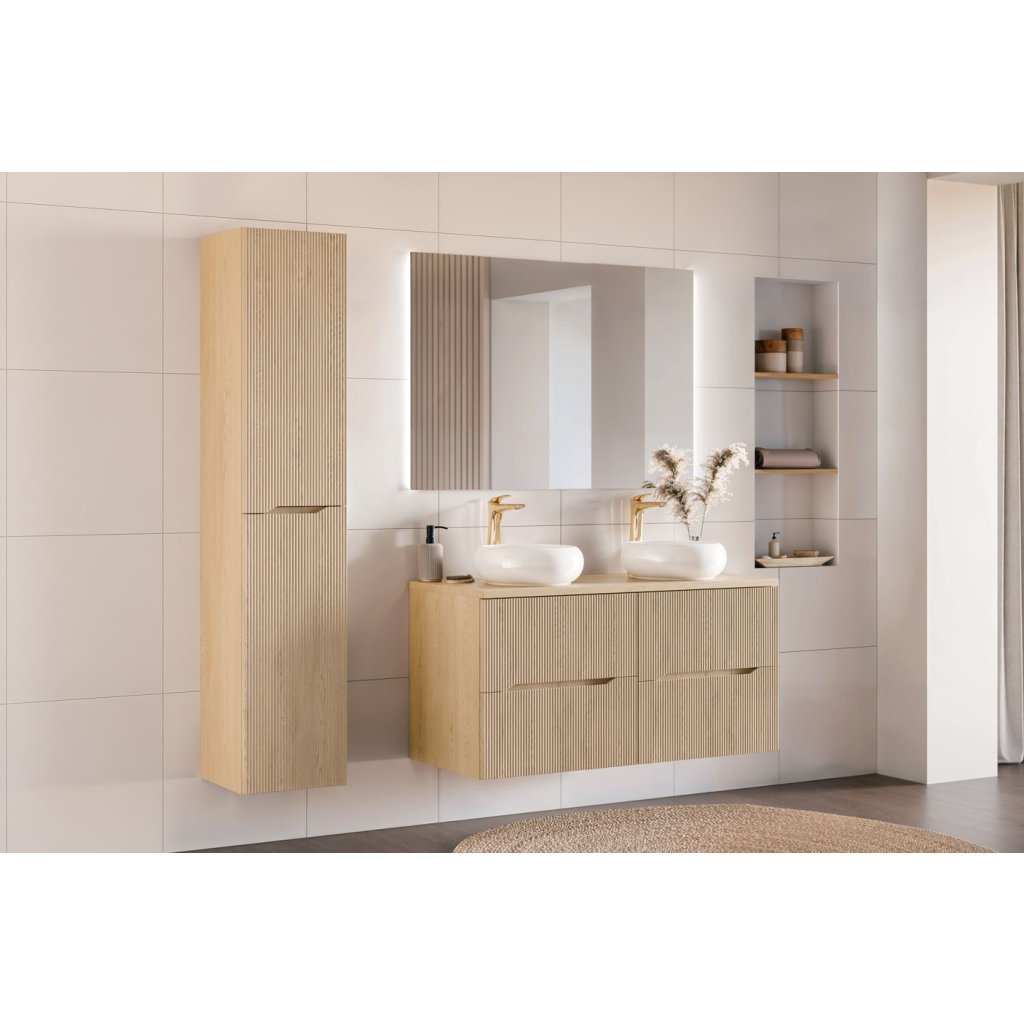 Colecția NORDIC Cremona combină designul modern cu o eleganță subtilă. Fronturile cu caneluri verticale conferă mobilierului un aspect lejer și sofisticat, în timp ce decorul din stejar Cremona creează o atmosferă confortabilă prin frumusețea naturală a lemnului. Nordic Cremona reprezintă mobilier de baie de înaltă calitate , cu o durată lungă de viață.