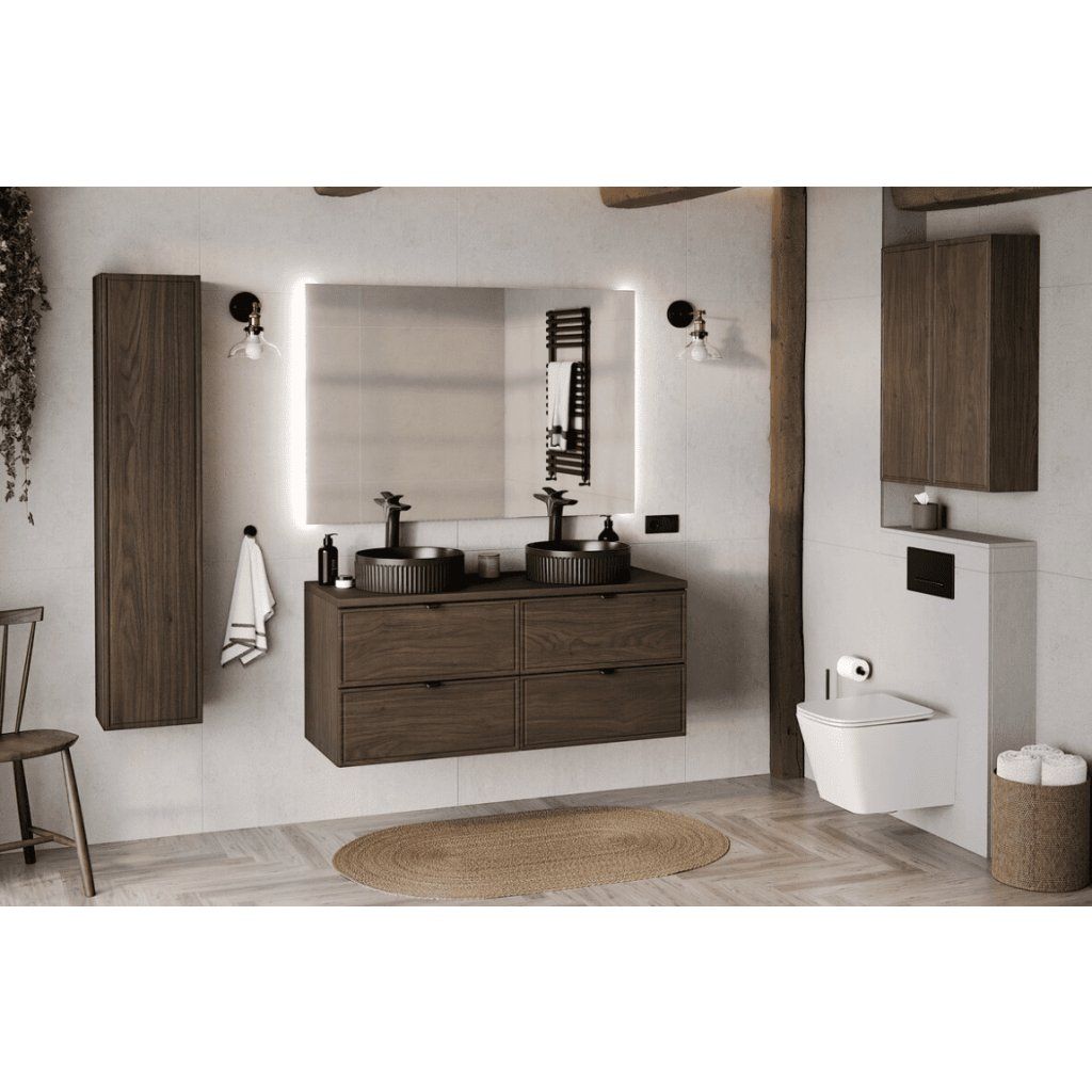 Adăugați stil și caracter practic băii dvs. cu ajutorul dulapului înalt modern pentru baie TERRA Villa . Designul elegant, cu decor natural din lemn de nuc închis, va ieși în evidență în orice interior și, în același timp, va oferi suficient spațiu de depozitare pentru toate necesitățile băii dvs. O ușă practică oferă acces convenabil la obiectele depozitate, în timp ce deschiderea fără mâner subliniază aspectul modern al mobilierului. Datorită materialului durabil și finisajului suprafeței, dulapul este potrivit și pentru un mediu umed în baie. Este o alegere ideală pentru cei care caută o combinație de funcționalitate, estetică și durată lungă de viață. Veți aprecia deschiderea cu PUSH TO OPEN.