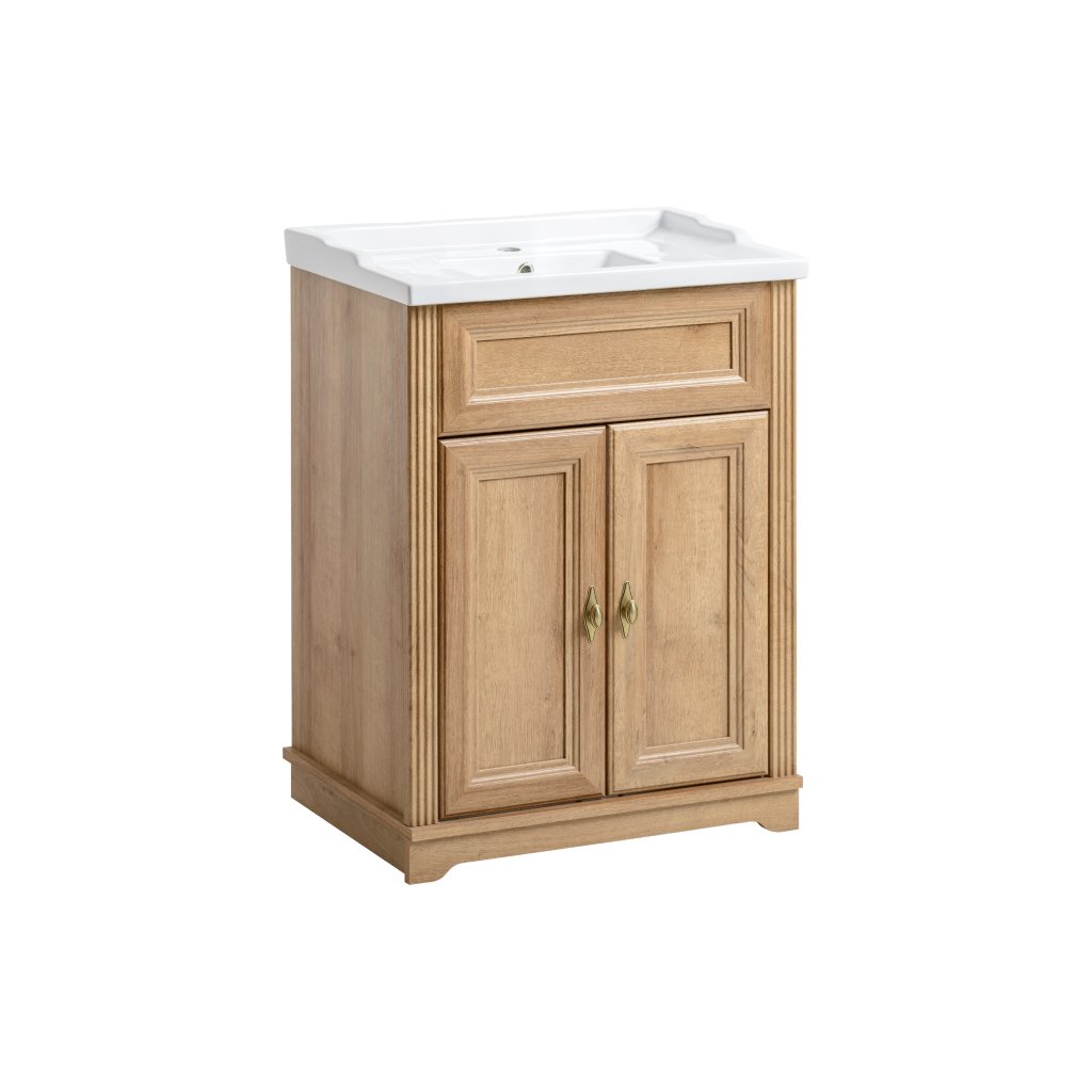 Lavoarul ceramic CFP 60 Retro, de culoare albă, are linii clasice și elegante. Lavoarul este conceput pentru a fi instalat într -un dulap de baie cu o lungime de 60 cm. Inclus în prețul lavoarului. Nu există robinet și accesorii de instalare (sifon etc.).