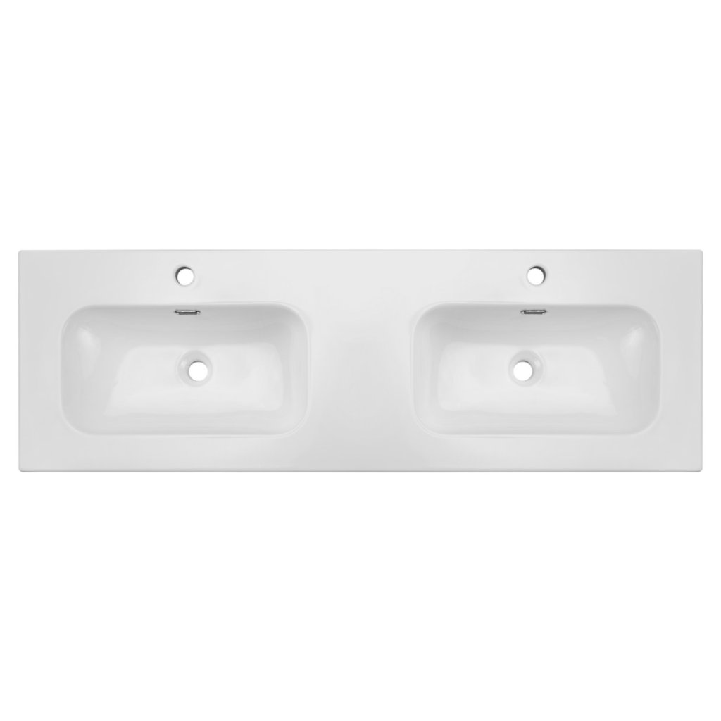Lavoarul dublu ceramic clasic FLY, fabricat în alb lucios, este potrivit pentru corpurile de mobilier cu lățimea de 140 cm. Prețul lavoarului nu include bateria și accesoriile de instalare (sifon etc.).