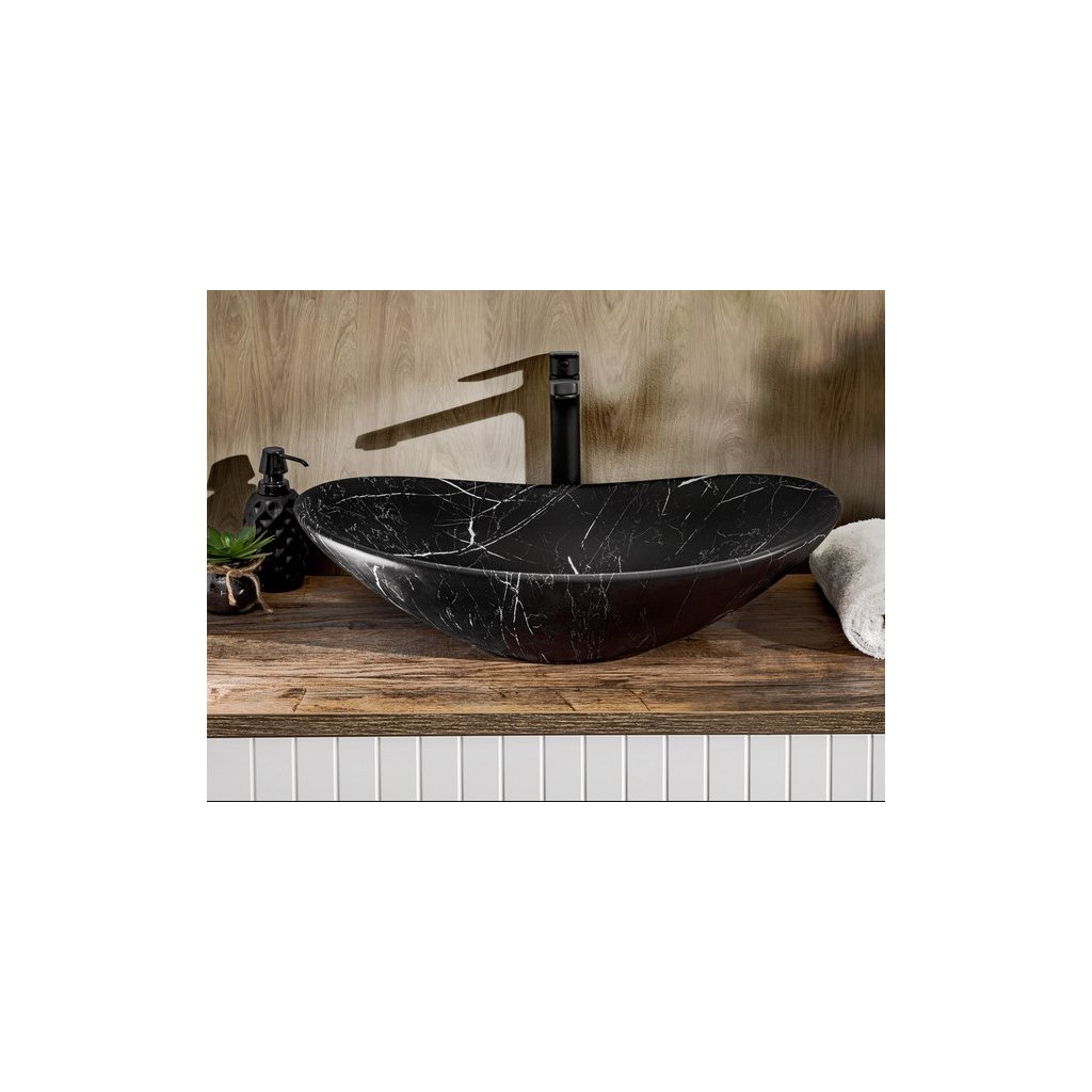 Lavoarul ceramic LENA MB2, cu finisaj negru mat și un aspect interesant de marmură, are linii clasice și elegante. Lavoarul este conceput pentru un dulap de baie cu blat. Prețul lavoarului nu include bateria și accesoriile de instalare (sifon etc.).