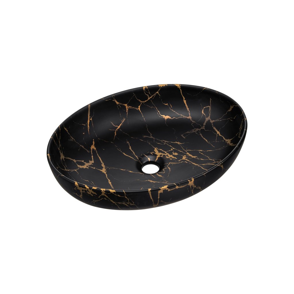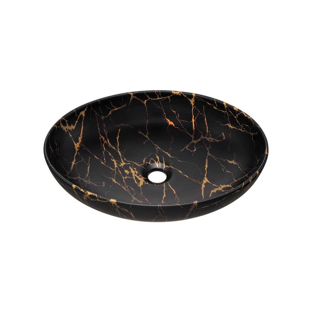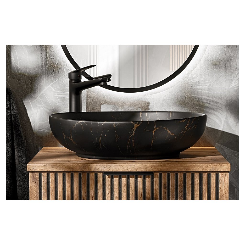 Lavoar ceramic MONA MB12 | negru mat/auriu 52 cm