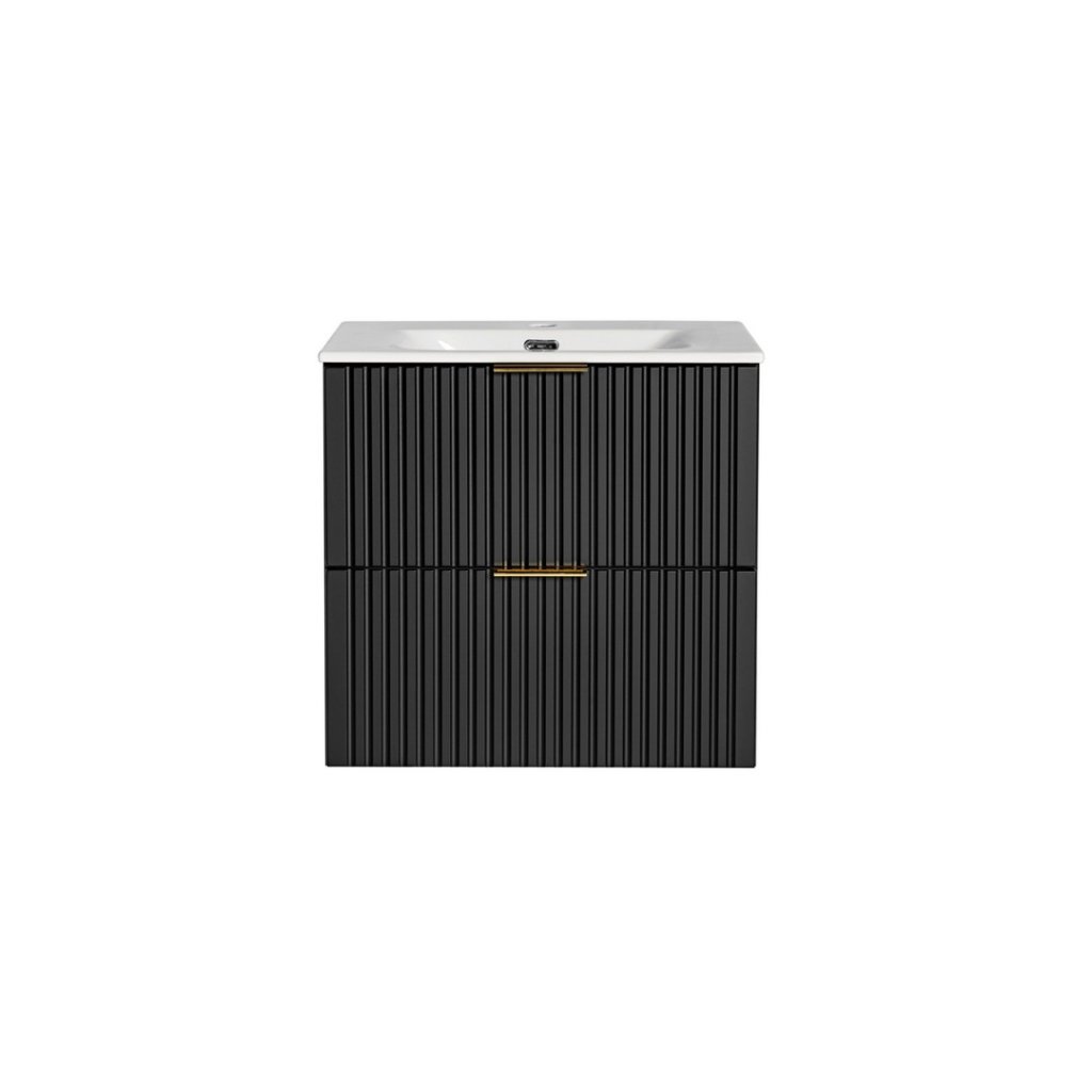Setul perfect de baie ADEL negru, în nuanța neagră, este ideal atât pentru băile moderne, cât și pentru cele clasice , iar funcționalitatea sa ridicată va asigura confort chiar și pentru cei mai exigenți utilizatori. Mobilierul pentru lavoar ADEL BLACK 82-60 are două sertare prevăzute cu opritoare silențioase. Designul minimalist este însuflețit de fronturile cu caneluri verticale , moderne și solicitate. Avantajul acestei colecții constă și în posibilitatea de a alege culoarea mânerelor, deoarece fiecare mobilier este prevăzut cu mânere în trei culori : auriu lucios, crom lucios și negru mat.