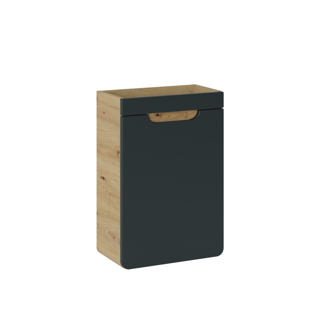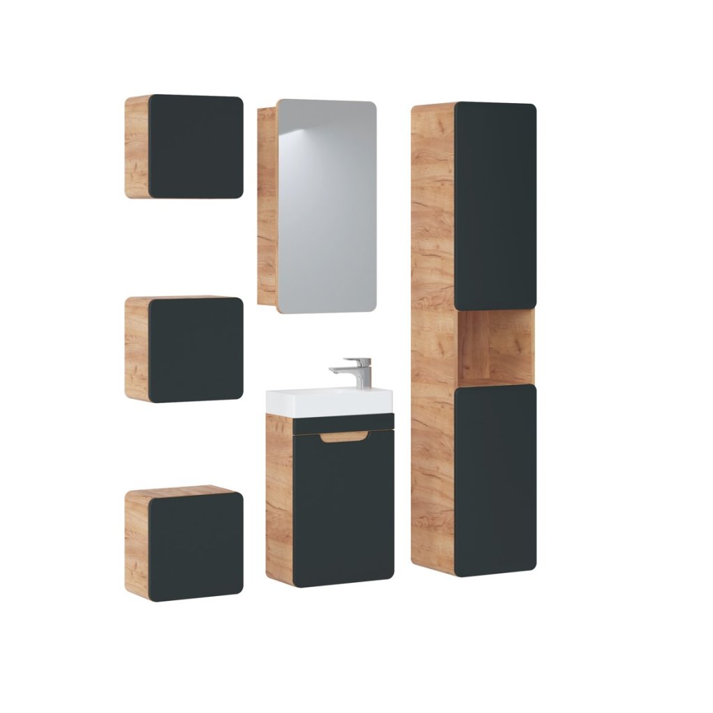 Bine ați venit la colecția de baie ARUBA COSMOS - o combinație unică de ușurință și design modern. Cu corpuri în decor auriu din stejar artizanal și fronturi într-o nuanță de gri, această colecție de baie creează un întreg delicat. Fiecare dulap de baie este finisat cu margini rotunjite, care vor adăuga un caracter unic și ușurință spațiului dumneavoastră. Fronturile dulapului fără mânere sunt inspirate de cele mai recente tendințe în designul interior, oferind băii dumneavoastră un aspect modern. Mobilierul de lavoar ARUBA Cosmos 826 are o ușă practică cu închidere silențioasă, care poate fi montată atât în versiunea stângă, cât și în cea dreaptă.