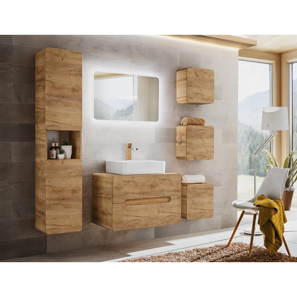 ARUBA Craft este o colecție excepțională pentru baie , care impresionează prin designul său luminos și modern. Corpurile și fronturile în decorul stejarului auriu artizanal creează un întreg delicat în atmosfera unui SPA tropical. Marginile rotunjite ale dulapurilor de baie adaugă un caracter unic colecției, iar deschiderea fără mâner face trimitere la cele mai recente tendințe în designul interior. Mobilierul de lavoar ARUBA Craft 829 are două sertare cu închidere silențioasă.