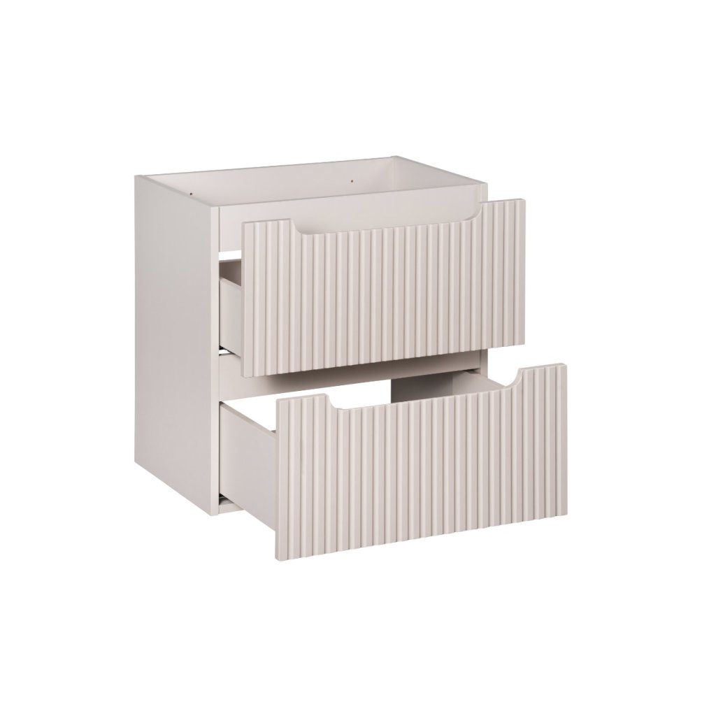 Mobilierul de baie NOVA Cashmere 82-60-2S are două sertare echipate cu mecanisme de închidere silențioasă. Mobilierul de baie din colecția NOVA CASHMERE este conceput cu o adâncime mai mică. Această caracteristică, împreună cu alegerea lavoarelor și a accesoriilor, subliniază versatilitatea și adaptabilitatea sa, permițând soluții elegante și funcționale chiar și în interioare mici. Împreună cu colecțiile de baie NOVA White și NOVA Oak , permite o adaptare flexibilă la nevoile individuale.