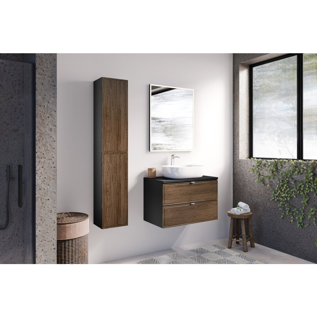 Descoperiți mobilier de baie care combină eleganța atemporală cu stilul contemporan. Colecția Talia Casella se remarcă prin designul său unic, dominat de decorul Stejar Casella , care reflectă fidel frumusețea lemnului natural. Combinația cu culoarea neagră mată intensă a dulapurilor conferă mobilierului un aspect modern și sofisticat.
