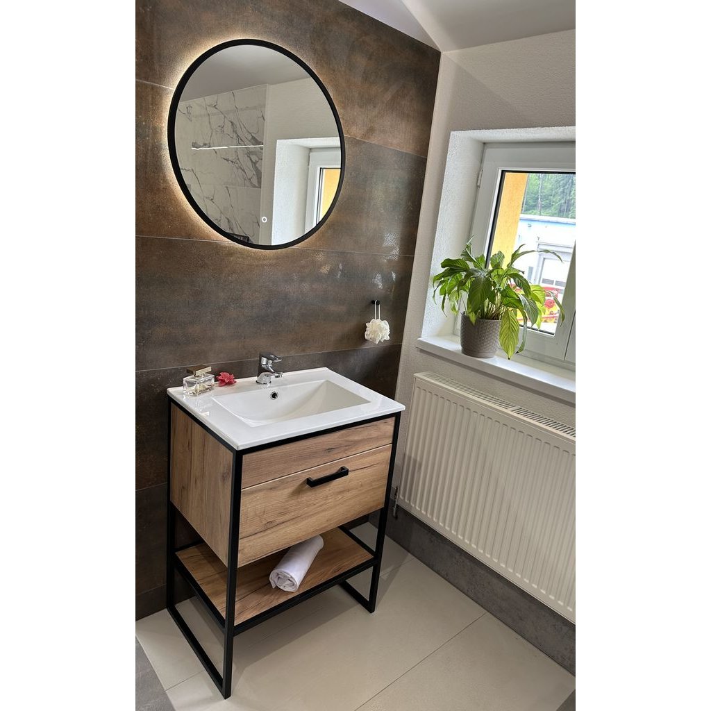 Practic și modern Mobilierul de baie este alcătuit din mai multe componente cu ajutorul cărora vă puteți face baia mai confortabilă, iar unul dintre elementele care nu ar trebui să lipsească este cu siguranță o oglindă . Oglinda LUNA FI800 LED poate fi agățată pe perete. Este o soluție practică pentru băile moderne , care asigură confort în igiena zilnică. Oglinda LUNA FI800 cu întrerupător într-o ramă neagră își va găsi, de asemenea, locul în baia dumneavoastră.