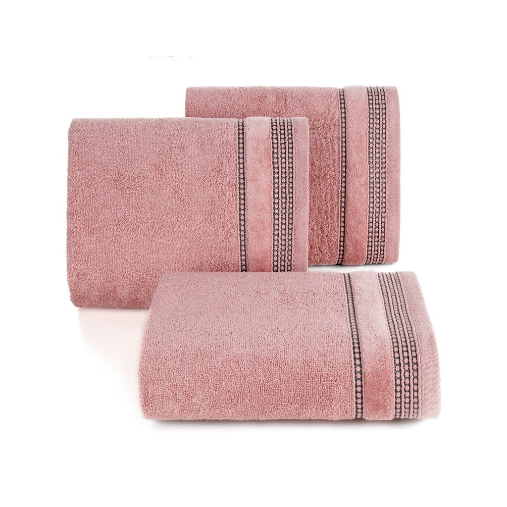 Prosop cu dungi decorative din velur, lățime: 50 cm, lungime: 90 cm, culoare: roz pudrat, greutate: 500 GSM, compoziție: Material: 100% bumbac, parte decorativă: Material: 100% poliester