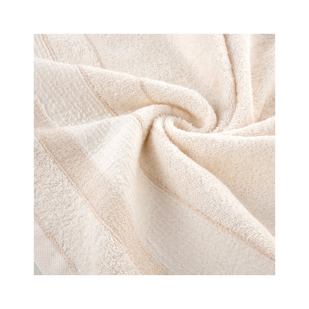 Prosop de bumbac cu garnitură jacquard și fir strălucitor, lățime: 50 cm, lungime: 90 cm, culoare: crem, greutate: 500 GSM, compoziție: Material: 100% bumbac, parte decorativă: Compoziție: 95% bumbac, 5% poliester