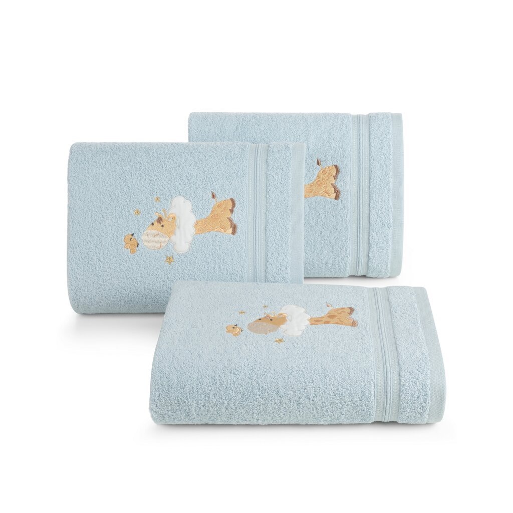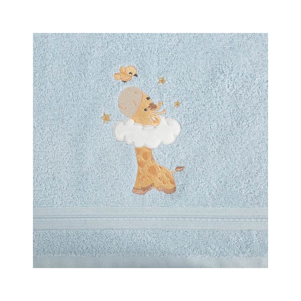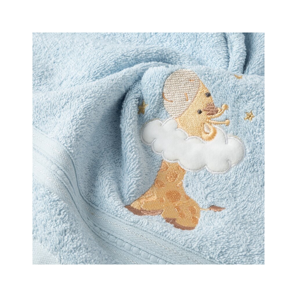 Prosop moale și foarte delicat pentru bebeluși, confecționat din pânză terry absorbantă din bumbac natural. Prosopul decorat cu o aplicație este ușor de spălat. Lățime: 50 cm, lungime: 90 cm, culoare: albastru, greutate: 450 GSM, compoziție: Material: 100% bumbac.