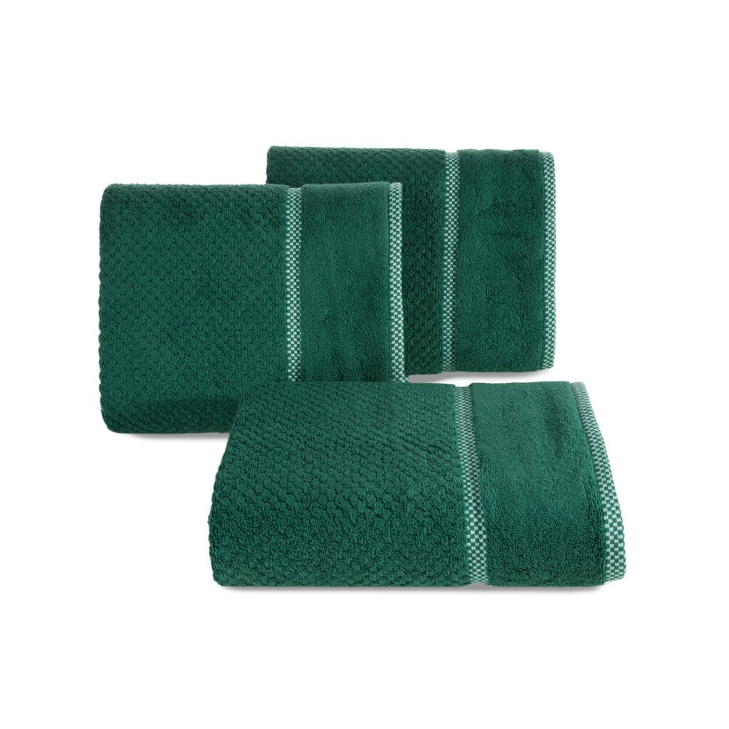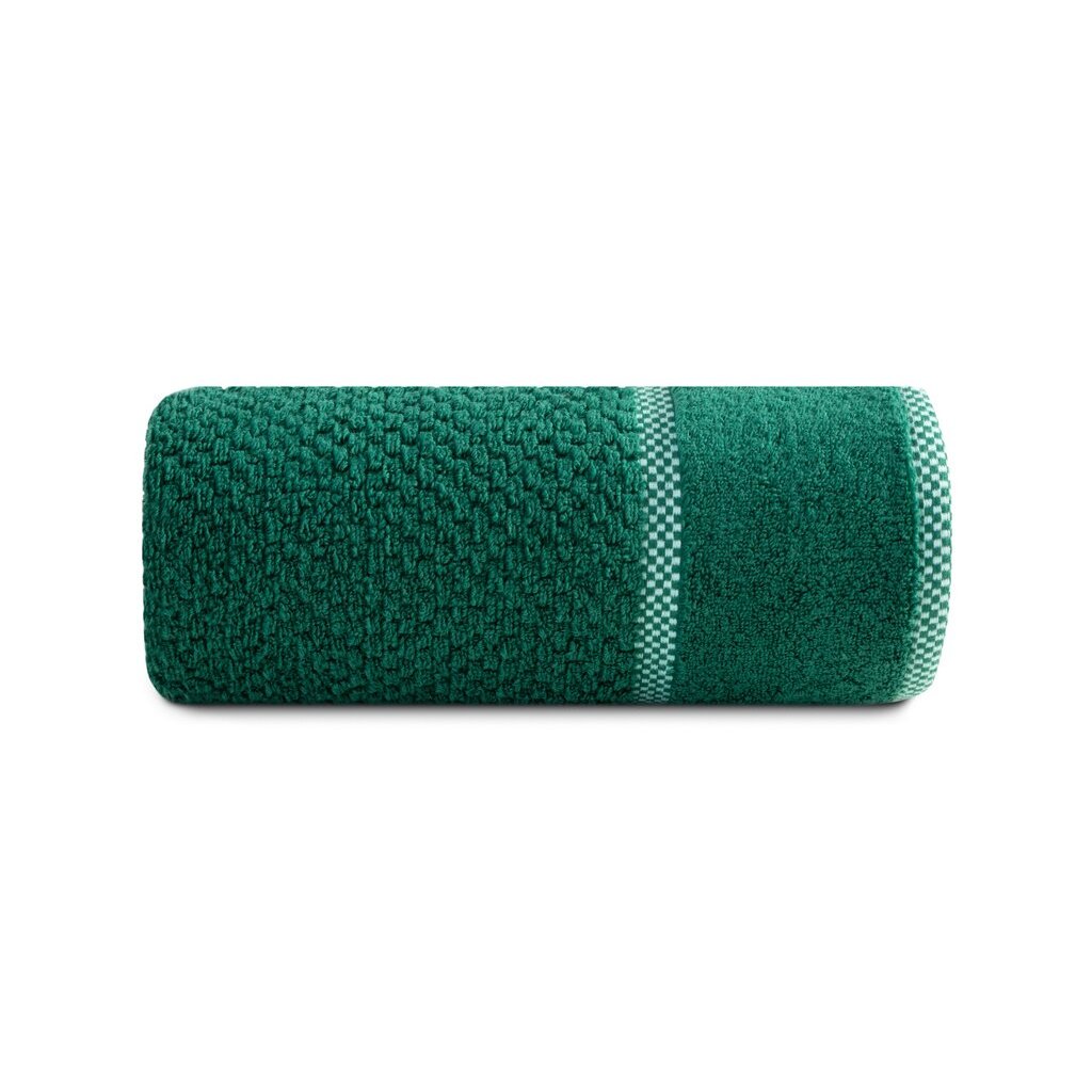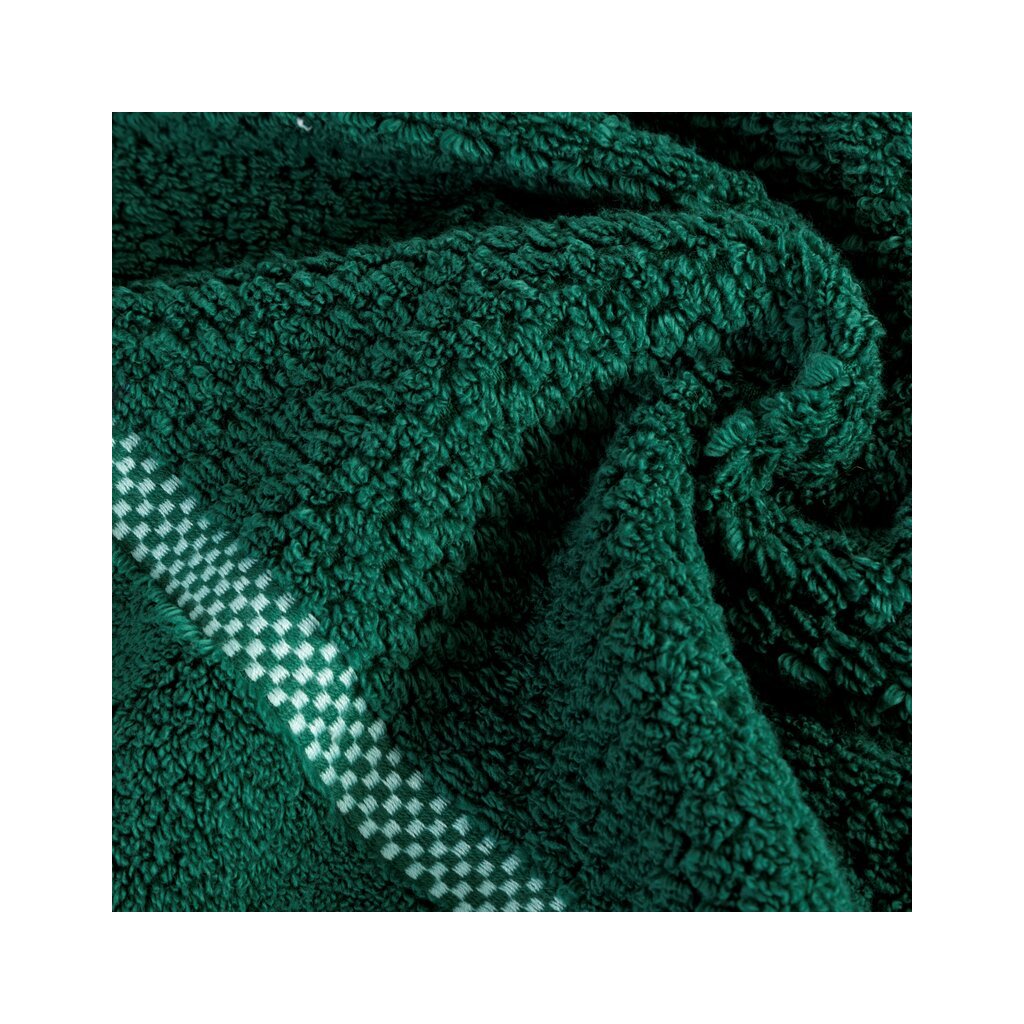 Prosop foarte absorbant, confecționat din bumbac moale, cu un relief fin în carouri și margini cu același model mai pronunțat. Foarte absorbant, ușor de spălat. Lățime: 70 cm, lungime: 140 cm, culoare: verde închis, greutate: 540 GSM, compoziție: Compoziție: 100% bumbac; parte decorativă: Compoziție: 69% bumbac, 31% poliester