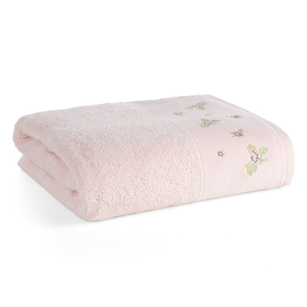 Prosop de baie din bumbac cu garnitură de velur și broderie florală, lățime: 70 cm, lungime: 140 cm, culoare: roz, greutate: 500 GSM, compoziție: Material: 100% bumbac