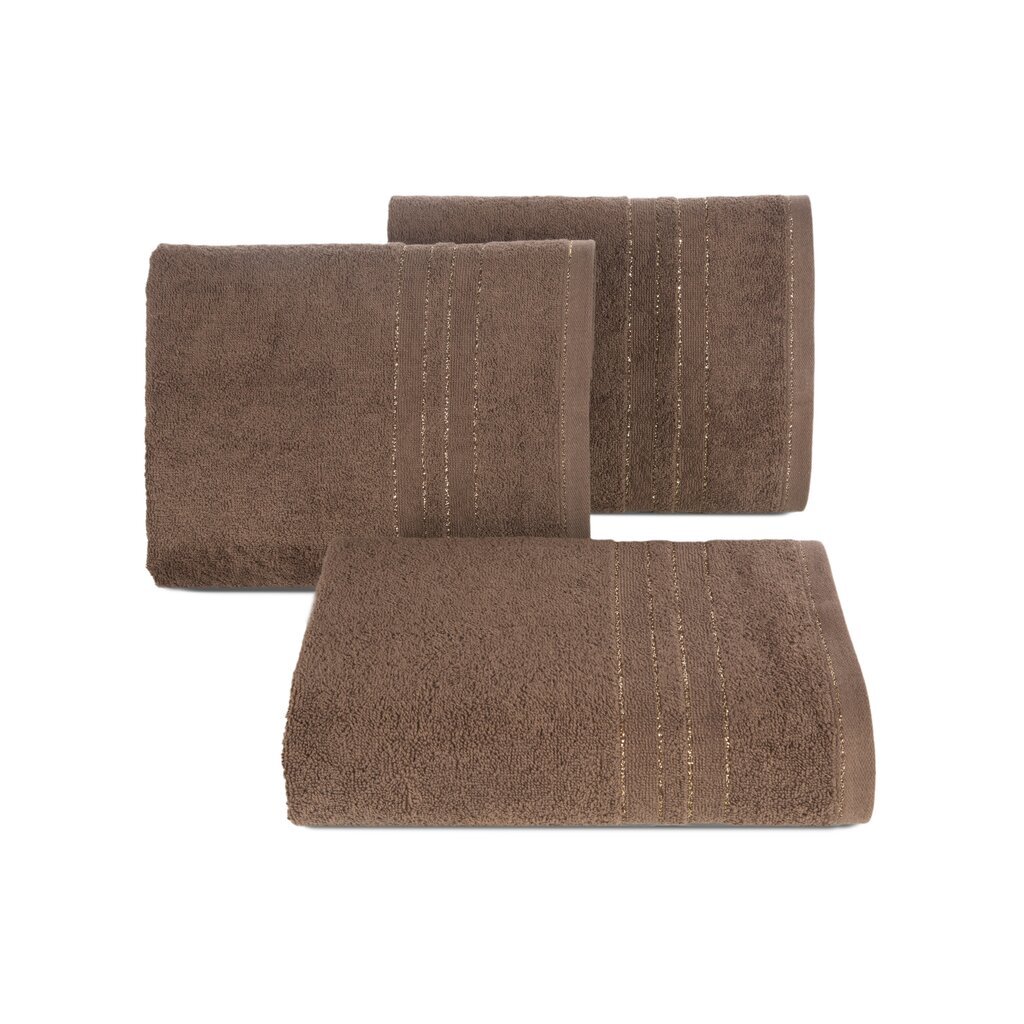 Prosop de bumbac cu margini decorate cu fir strălucitor, lățime: 50 cm, lungime: 90 cm, culoare: maro închis, greutate: 500 GSM, compoziție: Material: 100% bumbac, parte decorativă: Compoziție: 95% bumbac, 5% poliester