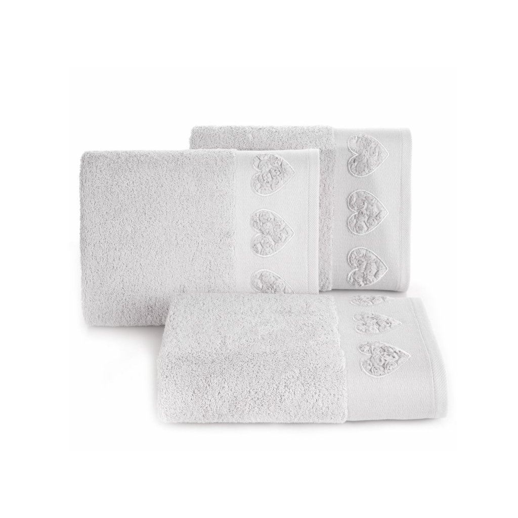 Prosopul din bumbac KAMILA este fabricat din bumbac terry moale și absorbant, decorat cu la margine cu aplicație sub formă de inimioare umplute cu trandafiri. Prosoapele sunt foarte bine absorbant și plăcut la atingere. Moale prosoape din oferta noastră va reînvia fiecare baie.