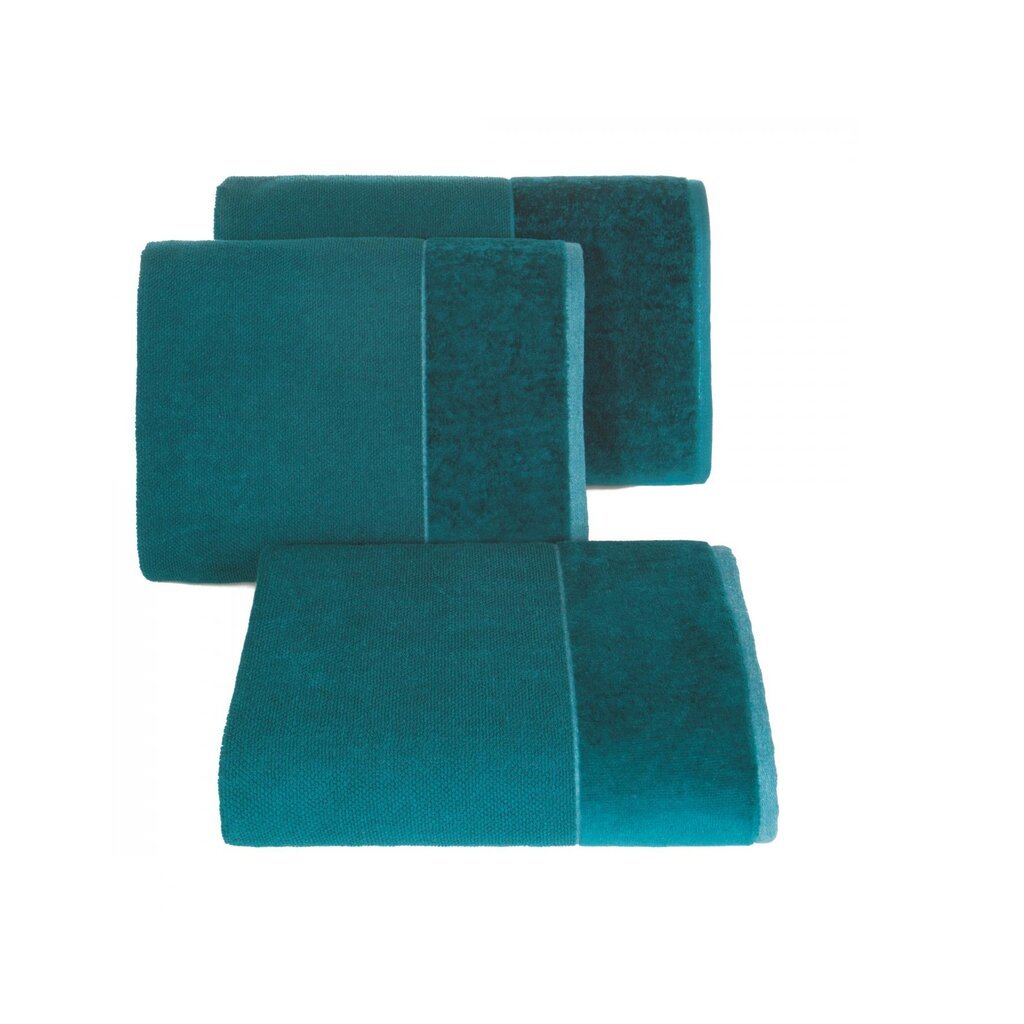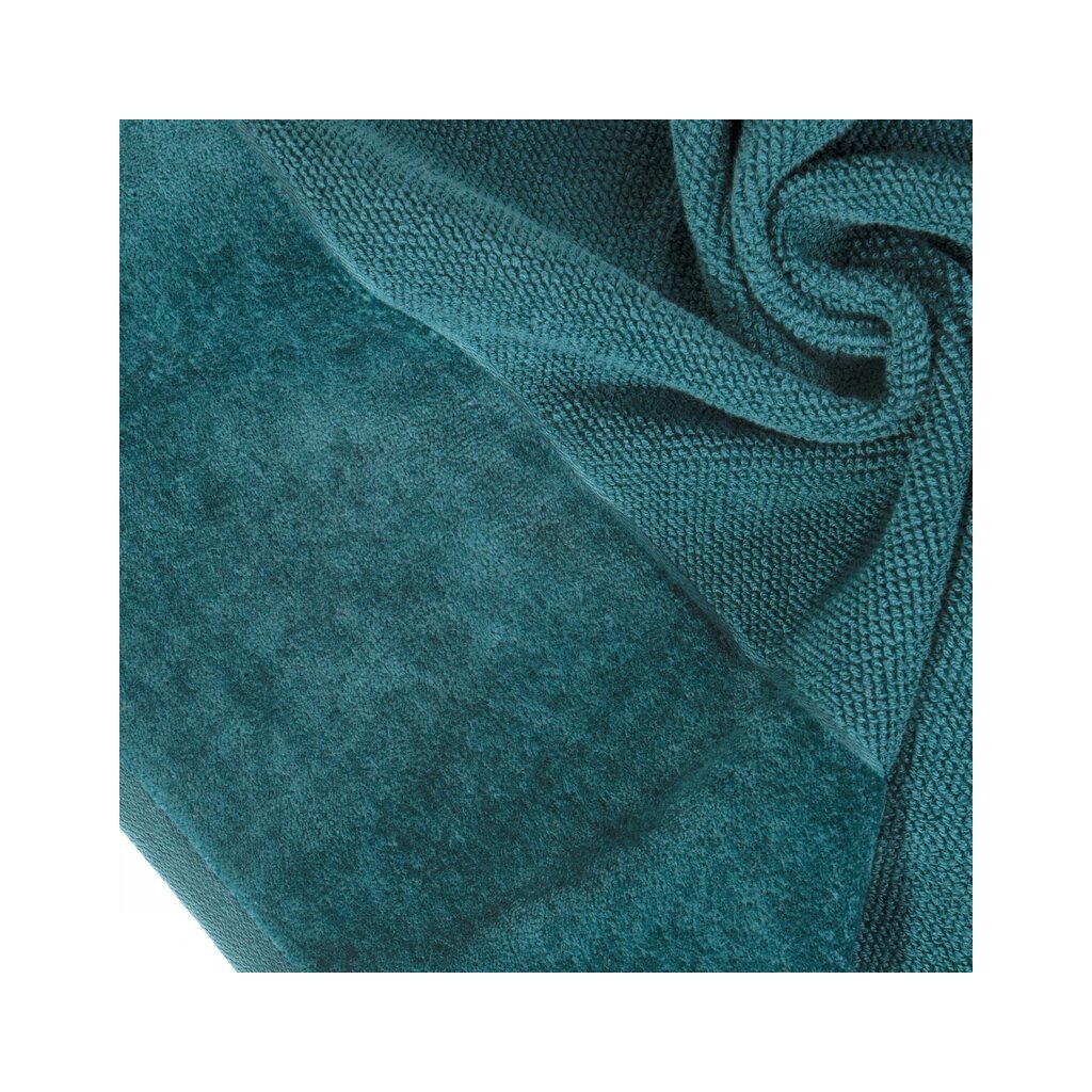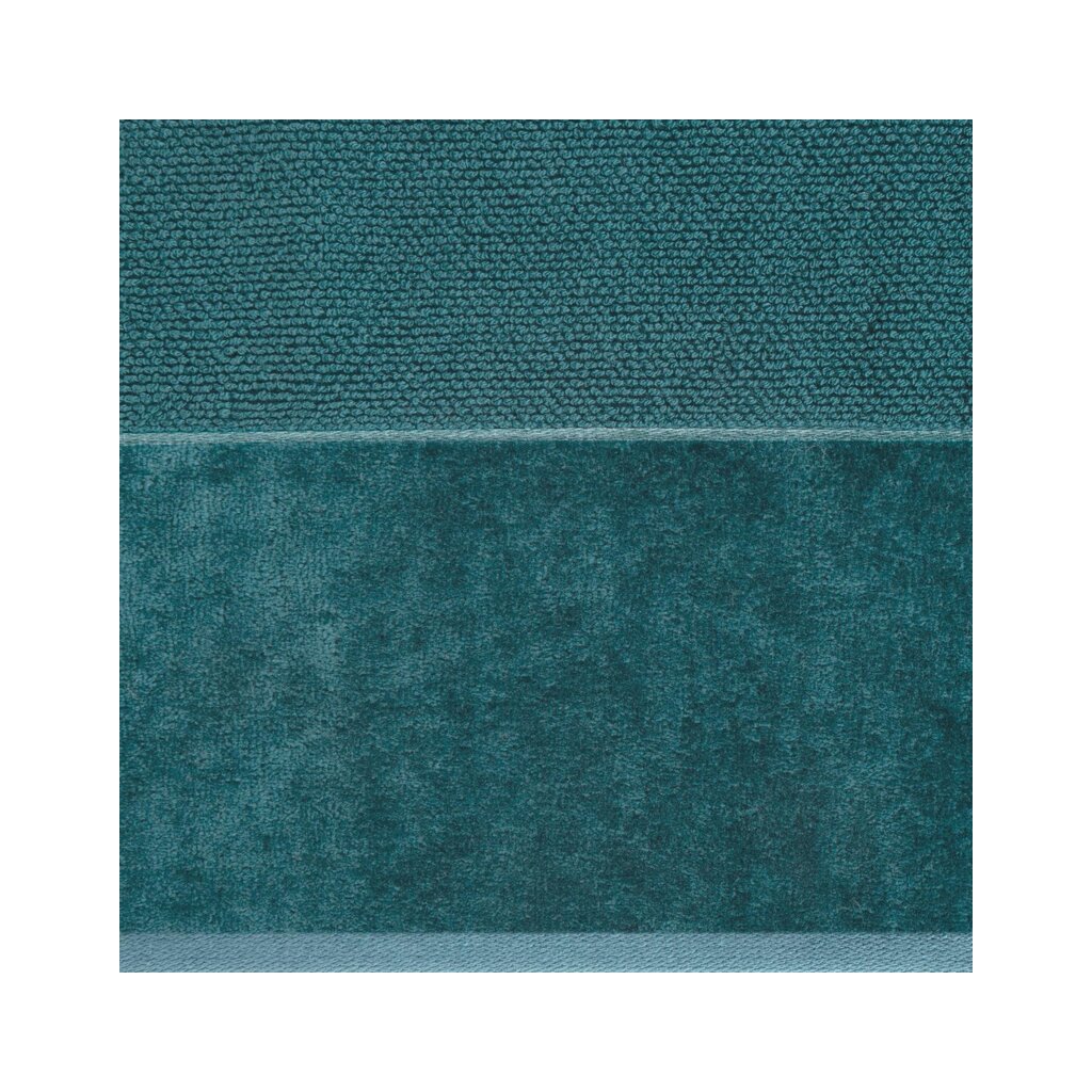 Prosop moale și foarte pufos, cu un aspect minimalist. Marginea lată de catifea adaugă o ușoară strălucire. Bumbacul absorbant nu pătează. Lățime: 30 cm, Lungime: 50 cm, Culoare: turcoaz închis, Greutate: 500 GSM, Compoziție: Material: 100% bumbac.