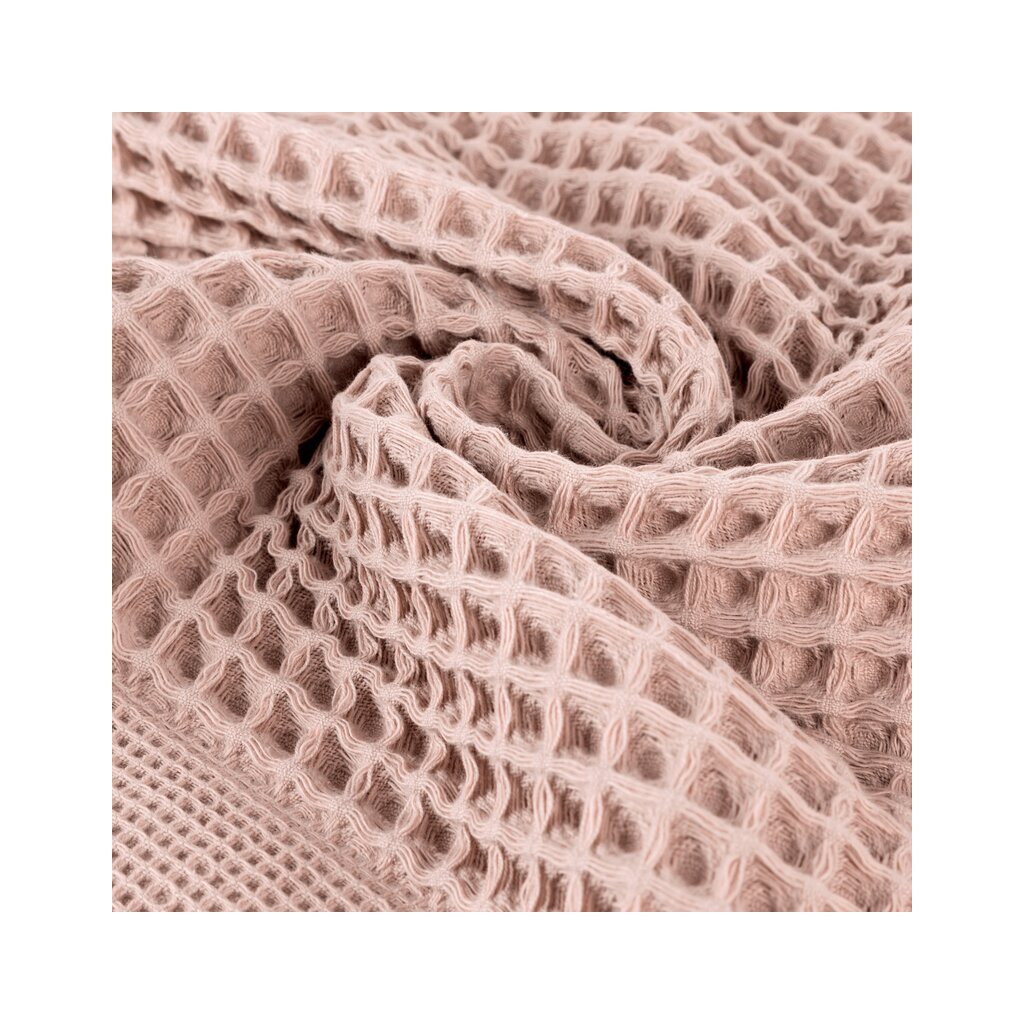 Prosop de bumbac cu structură caracteristică de tip vafă. Lățime: 50 cm, lungime: 90 cm, culoare: roz, greutate: 400 GSM, compoziție: Material: 100% bumbac