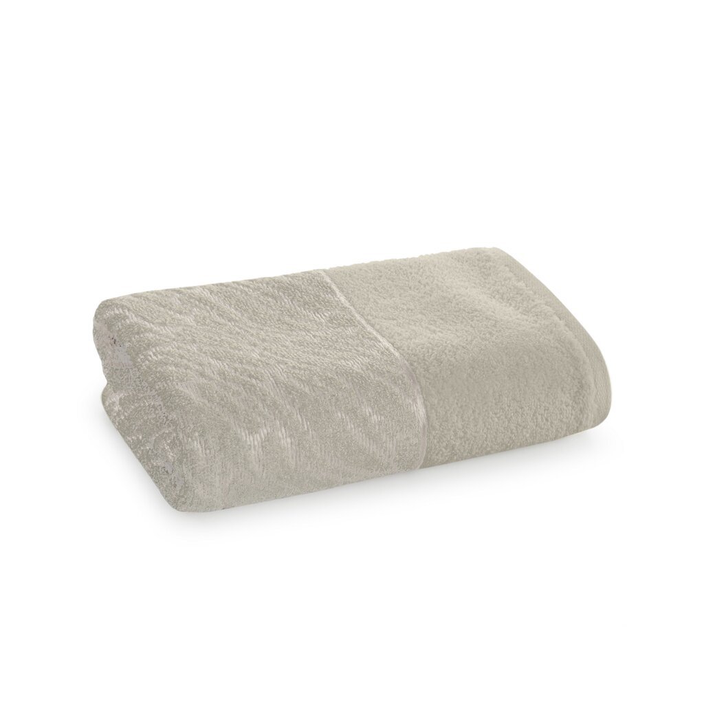 Prosop din bumbac cu relief și garnitură de velur. Lățime: 50 cm, Lungime: 90 cm, Culoare: bej, Greutate: 500 GSM, Compoziție: 88% bumbac, 12% poliester