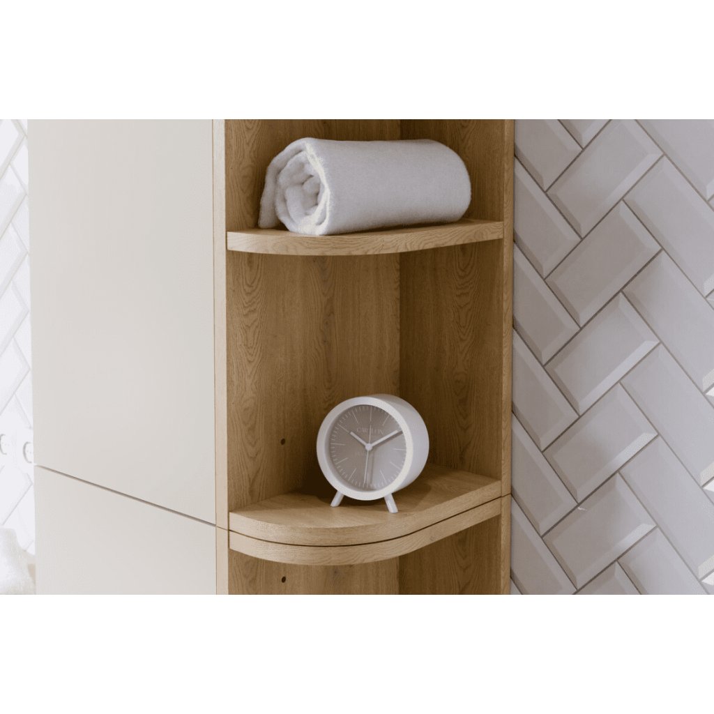 Completează-ți baia cu un element practic și elegant. Raftul suspendat deschis ASTER Green 83-15-80 SM, cu decor modern din stejar cremona, oferă o combinație ideală de estetică, spațiu de depozitare și economie de spațiu. Datorită designului său vertical, raftul este ideal și pentru băile mai mici, unde este important să se utilizeze eficient fiecare centimetru. Liniile minimaliste subliniază caracterul modern al mobilierului. Finisajul suprafeței este conceput pentru a rezista la umezeală și la utilizarea zilnică în mediul din baie.