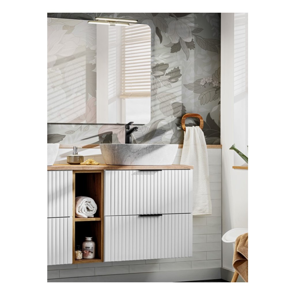 Setul perfect de baie ADEL 60/1, în culoarea albă, se va potrivi perfect atât în băile moderne, cât și în cele clasice. Funcționalitatea sa ridicată va asigura confort chiar și pentru cei mai exigenți utilizatori. Designul minimalist este însuflețit de fronturile cu caneluri verticale , care sunt moderne și la mare căutare. Avantajul acestei colecții este posibilitatea de a alege culoarea mânerelor, prețul fiecărui dulap include... Mânere în trei versiuni de culoare - auriu lucios, crom strălucitor și negru mat. Le puteți schimba în funcție de alte accesorii și totul se va potrivi perfect .
