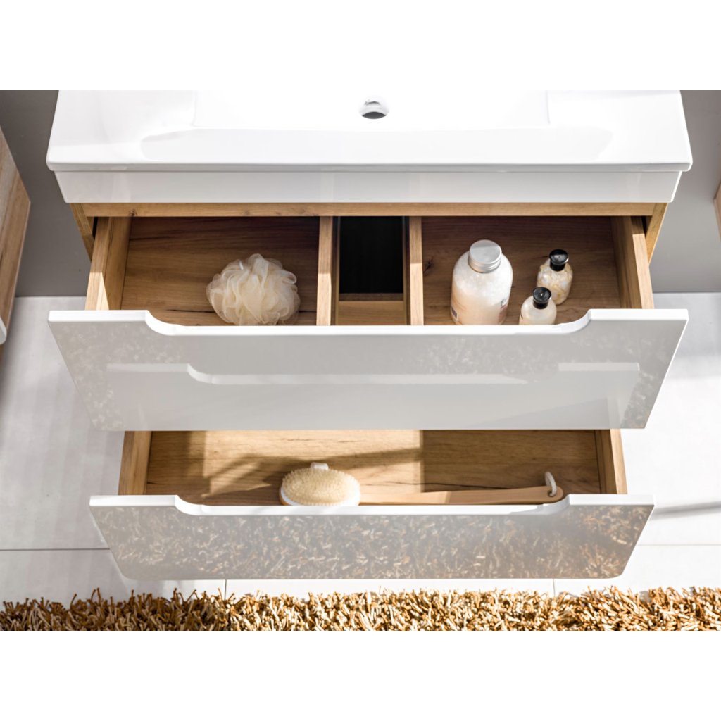Cauți un set de baie modern și atemporal chiar și după mai mulți ani? Atunci setul de baie ARUBA este alegerea potrivită pentru tine. Este realizat într-o combinație atractivă de culori. Stejar artizanal, auriu/alb lucios, pur și simplu nemuritor. Utilizarea zilnică confortabilă și ușoară va asigura închiderea silențioasă a ușilor și sertarelor. Mobilierul are mânere frezate. Mobilierul se livrează demontat și are un tratament special de suprafață care rezistă la umezeala din baie. Ușa poate fi montată pe stânga sau pe dreapta. Dulapurile sunt echipate cu un mecanism de închidere silențioasă .