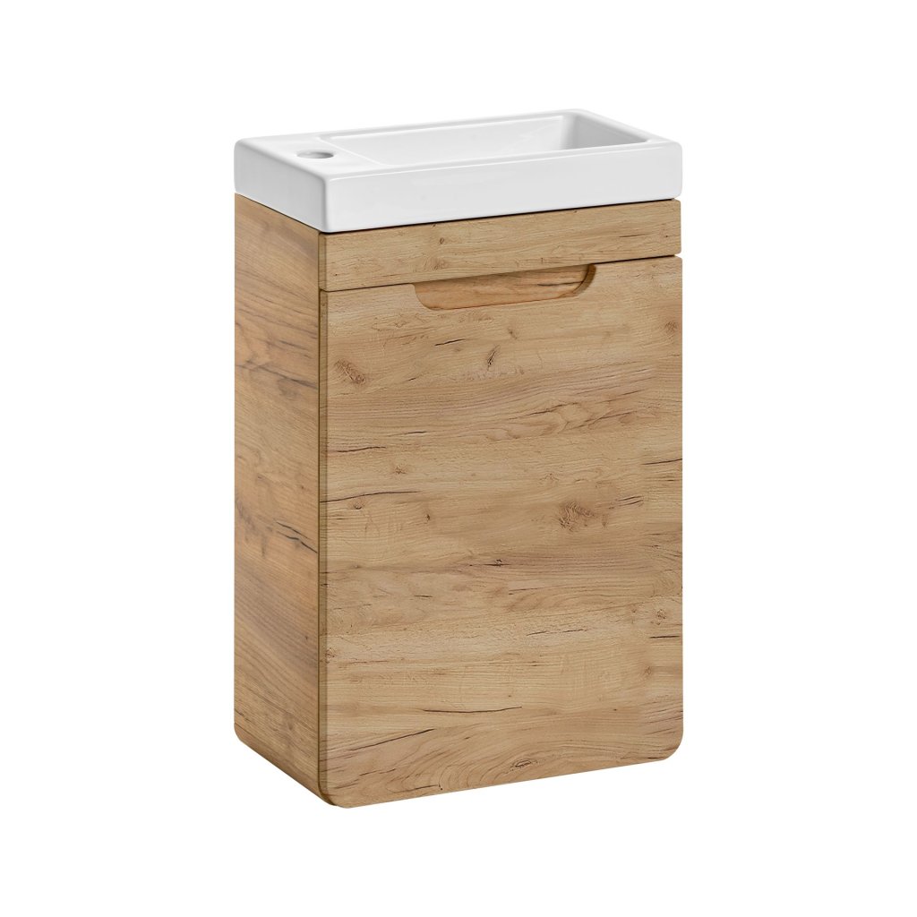 Noutatea sub forma setului ARUBA CRAFT va fi apreciată de fiecare iubitor de mobilier de design. Această culoare frumoasă va aduce o senzație de căldură și originalitate în baia dumneavoastră. Utilizarea confortabilă și ușoară de zi cu zi a setului de baie va asigura închiderea lină a ușilor și sertarelor. Ușile sunt universale pe partea P/L. Setul de baie imaginativ ARUBA Craft 40/1 include trei dulapuri suspendate tip cub, un dulap sub lavoar, un lavoar ceramic VEDEA și o oglindă LED STELLA. Alte accesorii din categoria accesorii.
