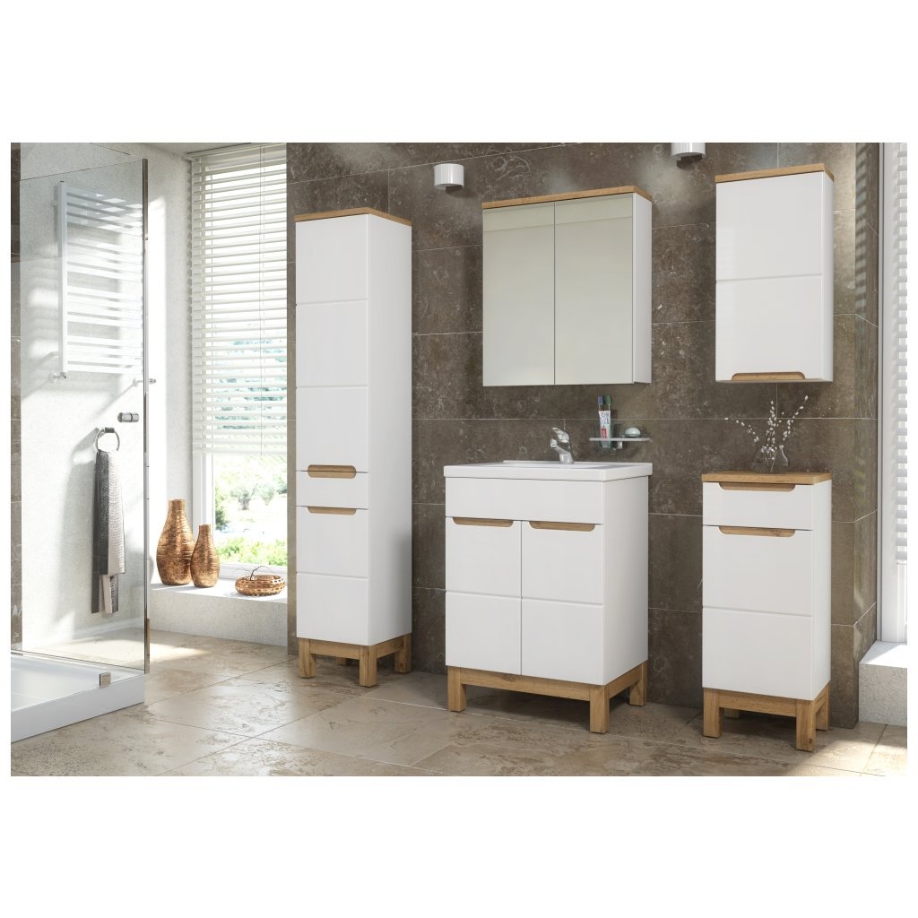 Mobilierul de baie elegant și modern BALI este alcătuit din mai multe componente cu care vă puteți face baia mai confortabilă. Este decorat cu freze fine și are, de asemenea, mânere frezate . Designul de culoare este foarte universal și se potrivește în orice baie. Caracteristica principală este închiderea silențioasă a ușilor și sertarelor. Mobilierul se livrează demontat și are un tratament special de suprafață care rezistă la umezeala din baie. Ușa poate fi montată în varianta stângă sau dreaptă.