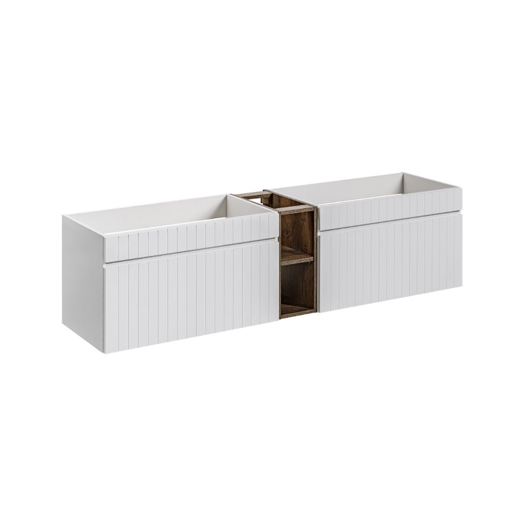 Ideile tale despre o baie modernă pot fi realizate mai ușor decât crezi. Mobilierul de baie cu un design simplu este însuflețit de caneluri verticale și se va potrivi în orice baie . Mobilierul alb combinat cu decorul din lemn de stejar Santa Fe este o combinație perfectă de culori care se potrivește în orice stil de interior al băii. Nu ezita și mobilează-ți baia cu setul de design ICONIC White . Puteți găsi oglinzi și corpuri de iluminat în categoria accesorii.