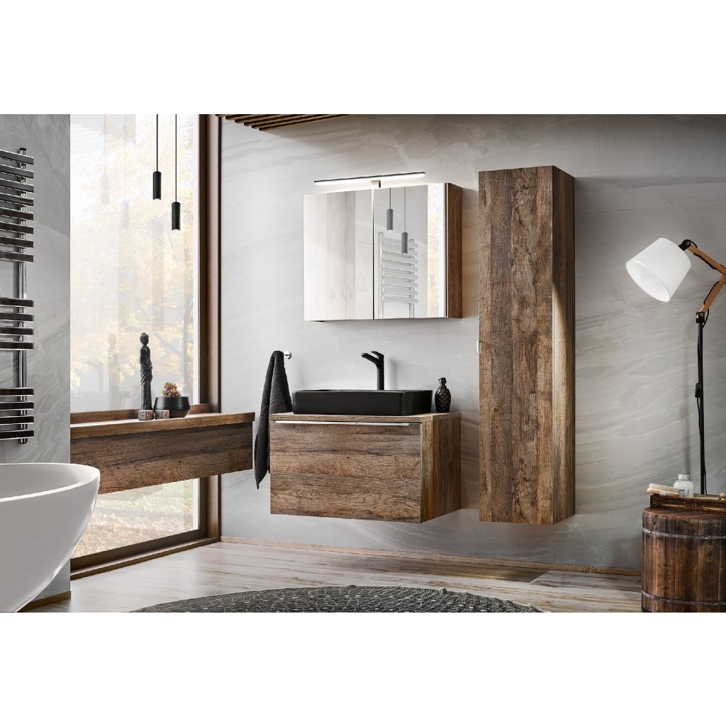 Ideile tale despre o baie modernă cu o notă vintage pot fi realizate mai ușor decât crezi. Decorul plăcut al băii SANTA FE Oak este înveselit de mânere cromate și, datorită unei selecții largi de corpuri de mobilier, se va potrivi în orice baie . Această colecție are un organizator suplimentar pentru sertare, care este inclus în prețul mobilierului pentru lavoar. Este funcțional nu numai datorită ascunderii perfecte a decupajului pentru sifon, ci oferă și spațiu suplimentar utilizabil în sertar. Un mare plus este închiderea silențioasă . Corpurile de iluminat potrivite pentru colecție pot fi găsite în categoria accesorii. Nu ezita și mobilează-ți baia cu setul de design SANTA FE Oak.
