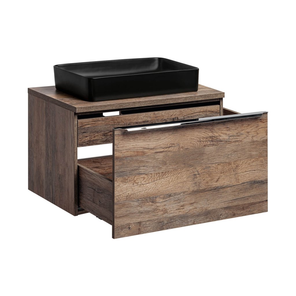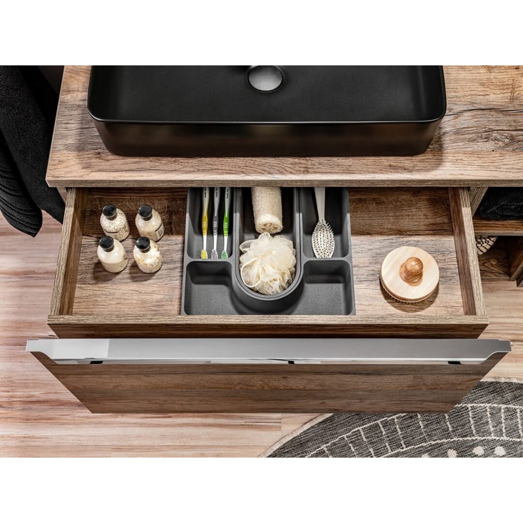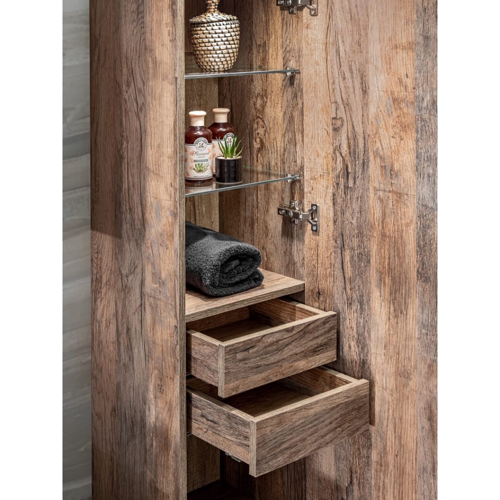 Ideile tale despre o baie modernă cu o notă vintage pot fi realizate mai ușor decât crezi. Decorul plăcut al băii SANTA FE Oak este înveselit de mânere cromate și, datorită unei selecții largi de corpuri de mobilier, se va potrivi în orice baie . Această colecție are un organizator suplimentar pentru sertare, care este inclus în prețul mobilierului pentru lavoar. Este funcțional nu numai datorită ascunderii perfecte a decupajului pentru sifon, ci oferă și spațiu suplimentar utilizabil în sertar. Un mare plus este închiderea silențioasă . Corpurile de iluminat potrivite pentru colecție pot fi găsite în categoria accesorii. Nu ezita și mobilează-ți baia cu setul de design SANTA FE Oak.