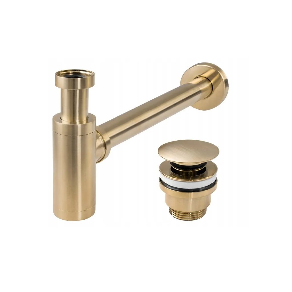 Sifon universal pentru lavoar | auriu periat, fabricat din alamă . Setul include toate piulițele și garniturile necesare pentru asamblare și utilizare.